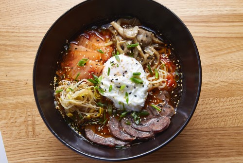 Меню главным образом закручено вокруг поке: кубики тунца, лосося, креветок или других морепродуктов заправляют авторским соусом, смешивают с авокадо, бобами эдамаме и другими овощами, украшают кунжутом, водорослями нори и выкладывают в боул на приготовленный на пару рис (белый или бурый), киноа или листья салата.