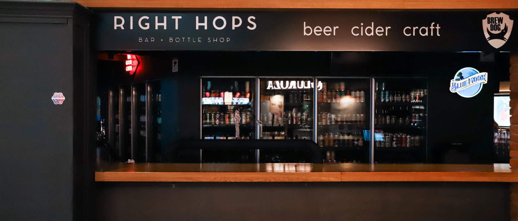 Right Hops смело можно назвать барами с самым широким выбором в городе пива и сидра, привезенного со всего мира. Более 600 сортов в бутылках и банках. А ещё по 20 кранов с разливным пивом и сидром в каждом баре, и они не дублируются.