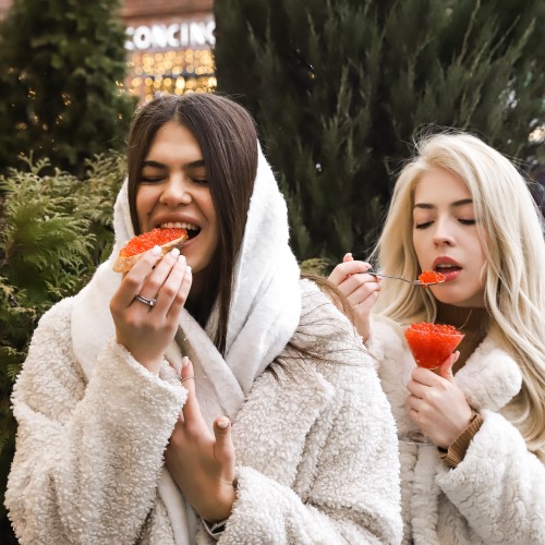 По льду витрины «плывут» целые косяки охлажденных рыб, из разных видов креветок выложены композиции, напоминающие экзотические цветы, в большом аквариуме по отсекам расселены устрицы и вонголе, гребешки и морские ежи. Деликатесных моллюсков можно купить с собой навынос, а можно съесть тут же, в лучших традициях европейских рынков. Вино, к слову, продается не только бутылками, но и по бокалам – от 400 руб./100 мл.