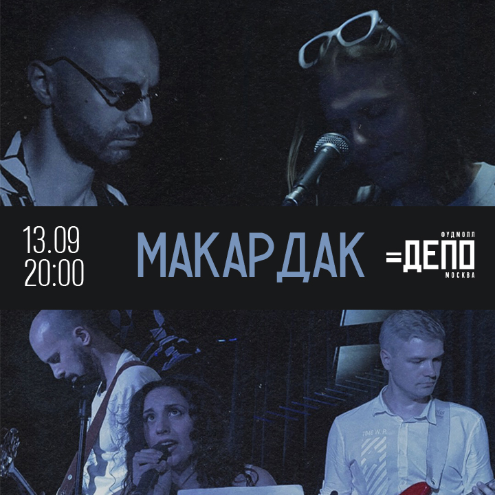 Осень — время ярких красок, увлекательных событий и тёплых встреч. 13 сентября в 20:00 приходите в фудмолл «Депо.Москва», чтобы провести вечер в компании талантливых музыкантов — группы «Макардак».